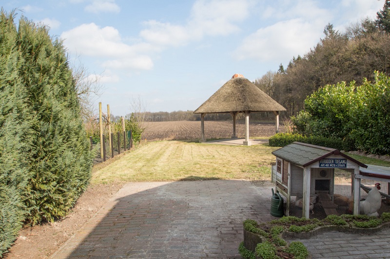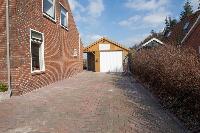 Op een mooie locatie tegen bosrand aan gelegen helft van een dubbel woonhuis met grote garage en aan achterzijde vrij uitzicht over de landerijen op een perceel van 465 vierkante meter eigen grond.