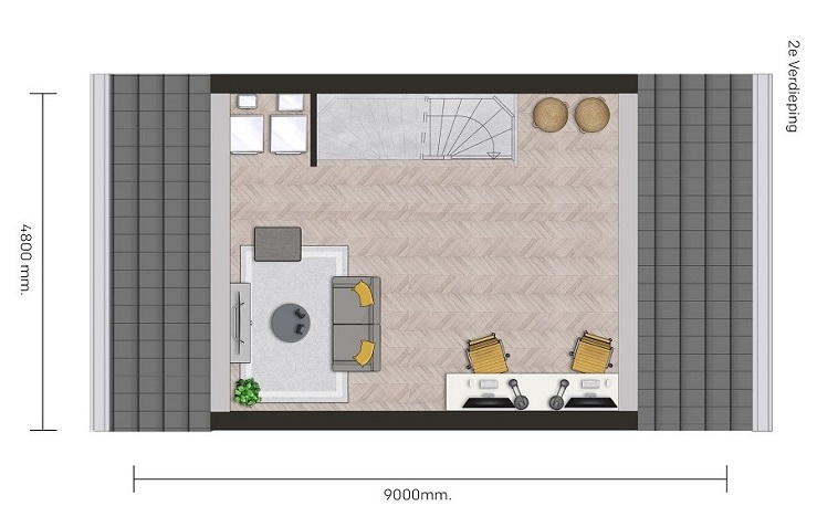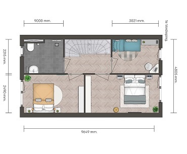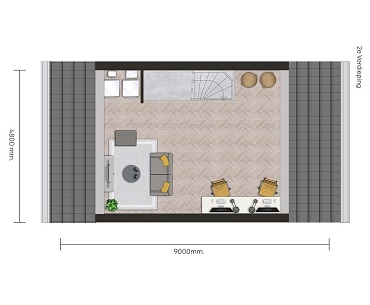 Indeling 2e verdieping : Met een vaste trap bereikt u de ruime zolder. Op deze met tapijt gestoffeerde verdieping bevindt zich de technische ruimte, tevens is er de mogelijkheid voor het aansluiten van uw wasmachine en droger.
